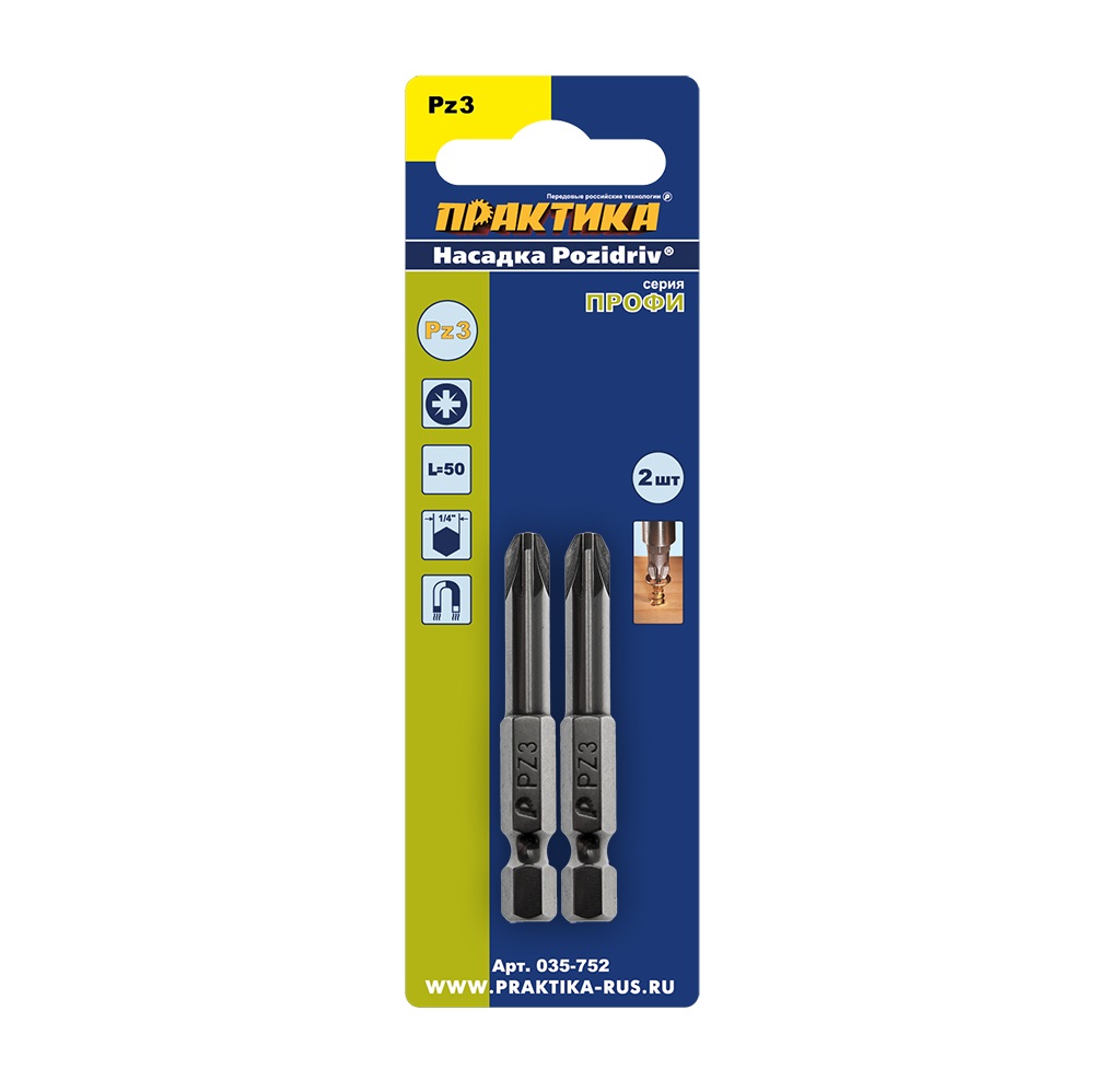 Расходные материалы для Бита отверточная Практика "Профи" PZ-3 х 50мм 035-752