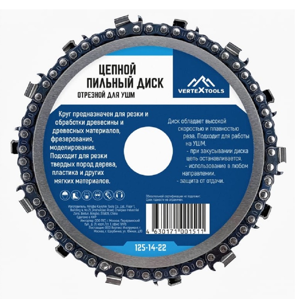Диск пильный цепной отрезной VERTEX 125-14-22