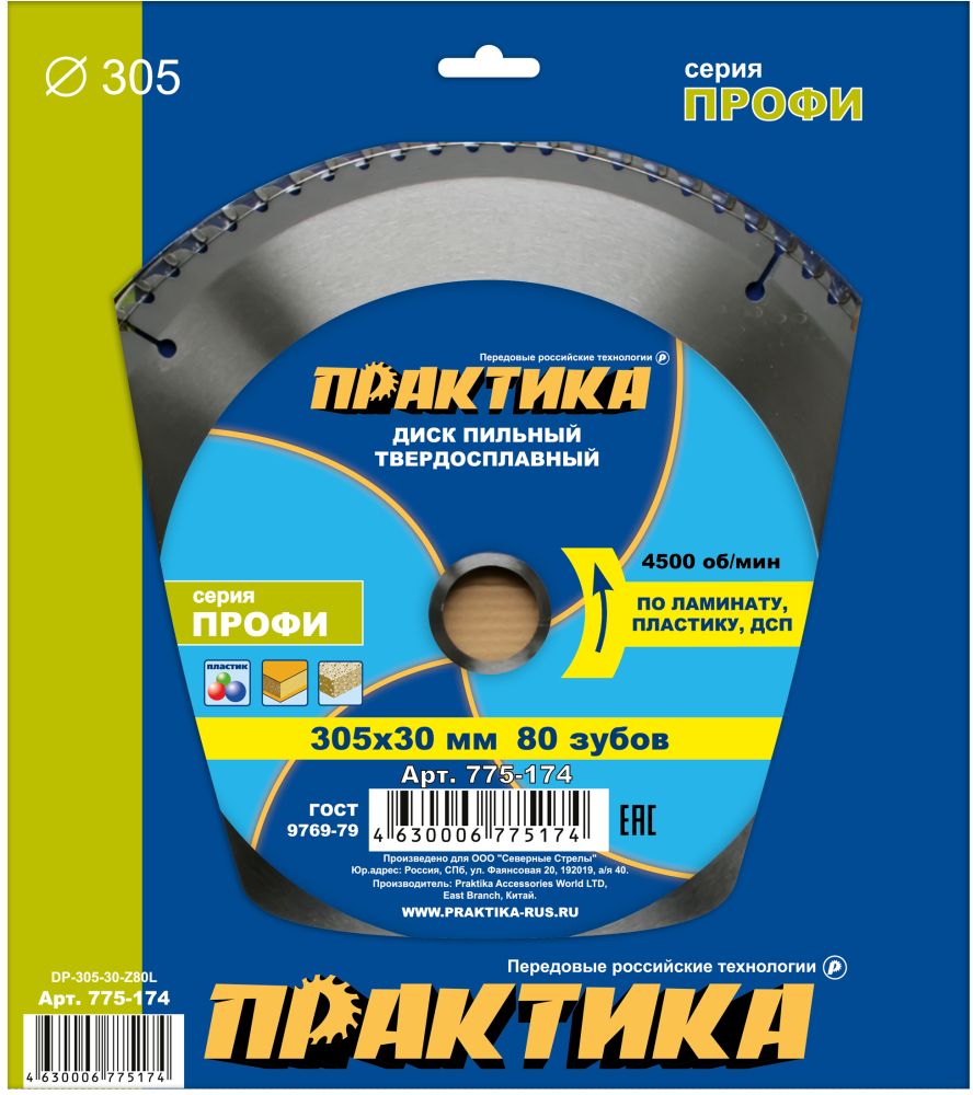 Расходные материалы для Диск пильный твёрдосплавный по ламинату ПРАКТИКА 775-174 305 х 30 мм