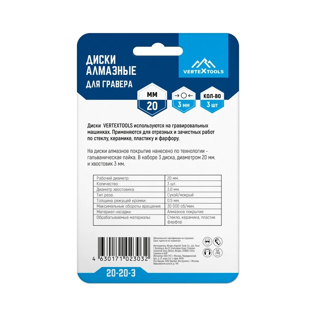 Расходные материалы для Диски алмазные VERTEX 20-20-3