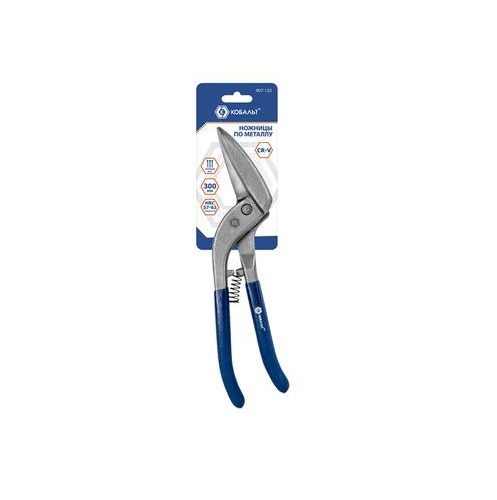 Назначение. Ручные ножницы по металлу КОБАЛЬТ Pelikan 300 мм, CR-V 1, блистер 907-132 предназначены для прямых непрерывных резов листового металла. По сравнению с обычными ножницами, рукоятки данной модели расположены выше линии реза. Это позволяет защитить руки при работе и избавляет от необходимости отгибать отрезанную часть металла.