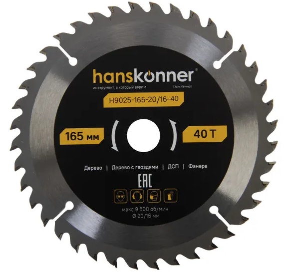 Пильный диск Hanskonner H9025-165-20/16-40