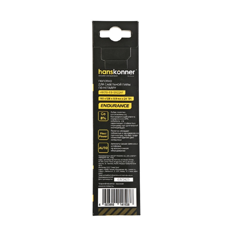 Расходные материалы для Полотно для сабельной пилы по металлу Hanskonner H9019-03-S922AF