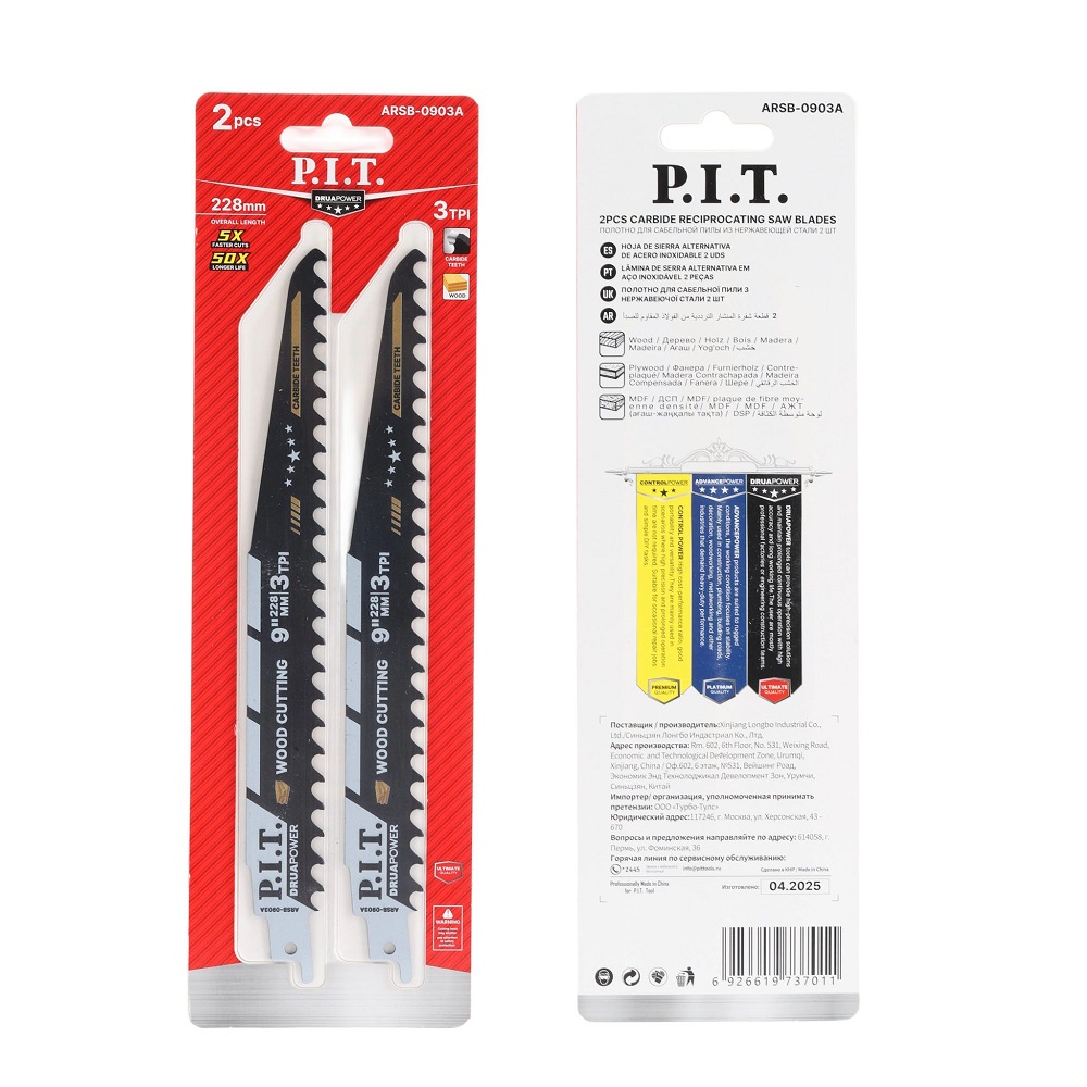 Расходные материалы для Полотно для сабельной пилы с карбидными зубьями PIT ARSB-0903A