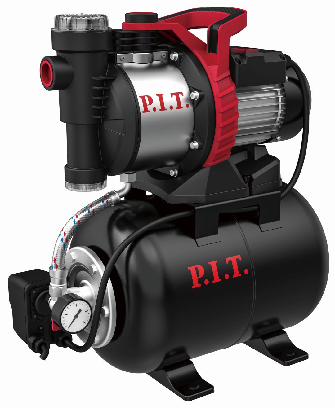 Насосная станция POG1100-P1 предназначена водоснабжения домов и загородных участков. Объем резервуара составляет 24 л.