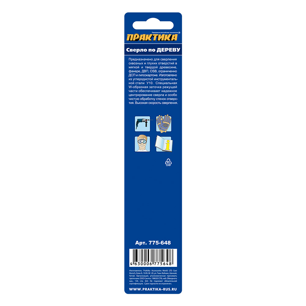 Расходные материалы для Сверло по дереву ПРАКТИКА 775-648