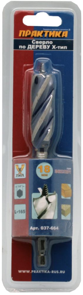 Сверло по дереву ПРАКТИКА Х-тип 18 х 165 мм