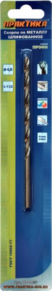 Сверло по металлу удлиненное ПРАКТИКА Р6М5 4.8 х 132 мм (1шт.)