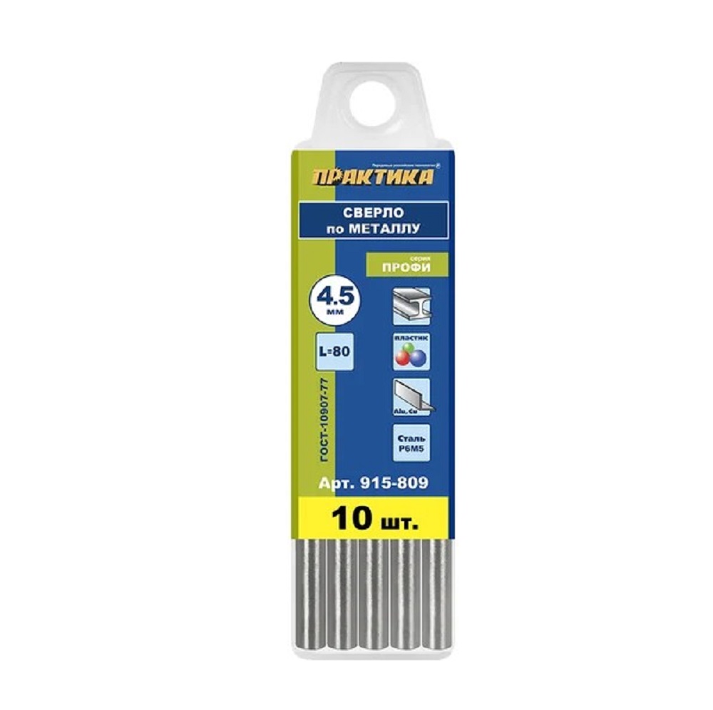 Расходные материалы для Сверло по металлу в групповой упаковке ПРАКТИКА 915-809